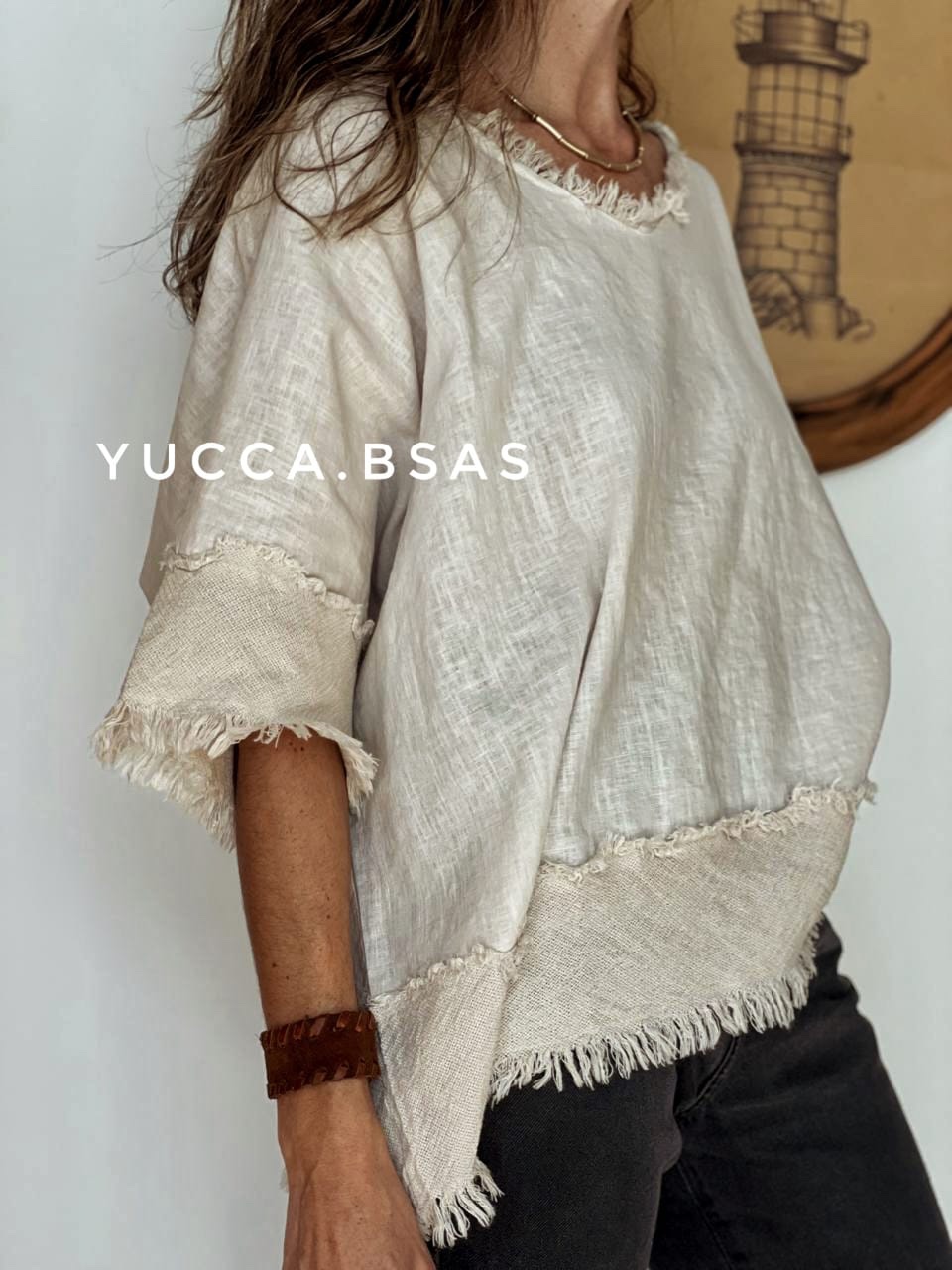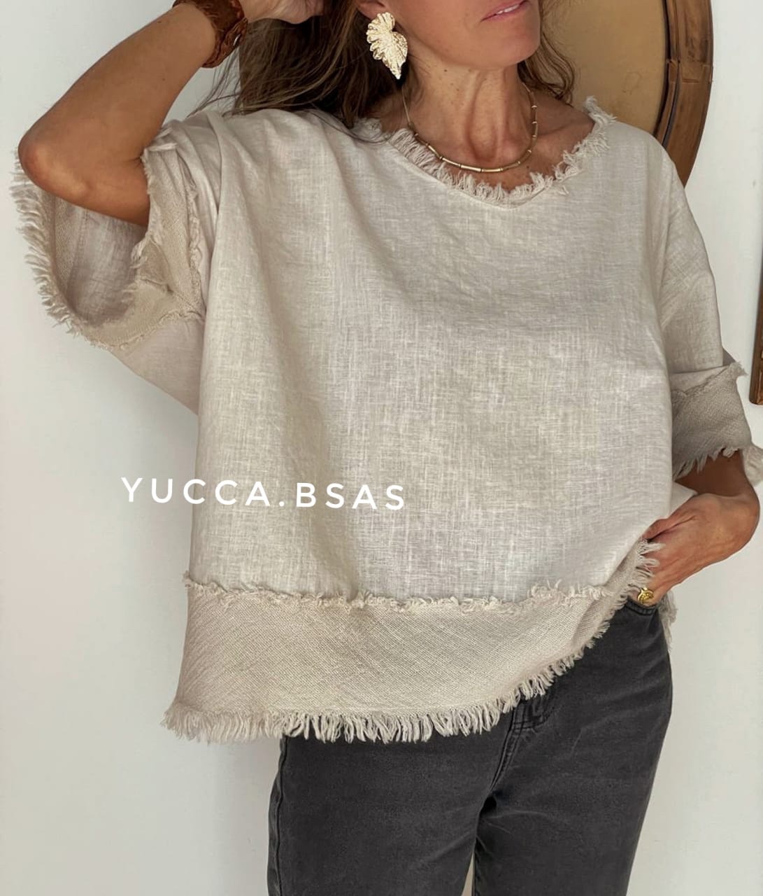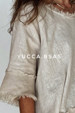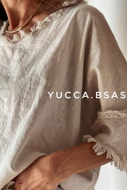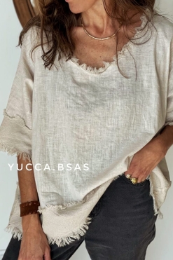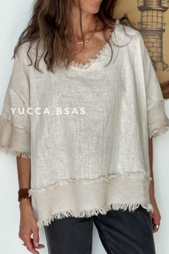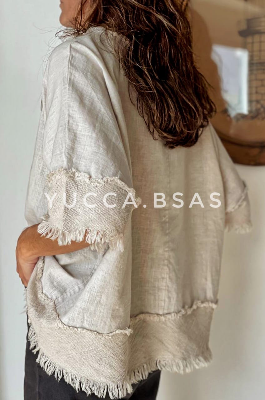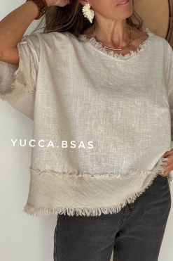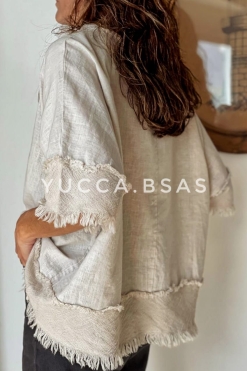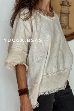 Blusa de lino italiano con detalle de terminaciones en telar de algodón.