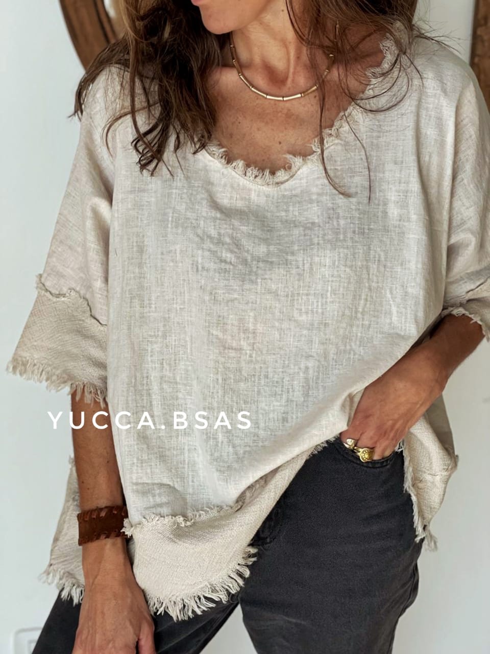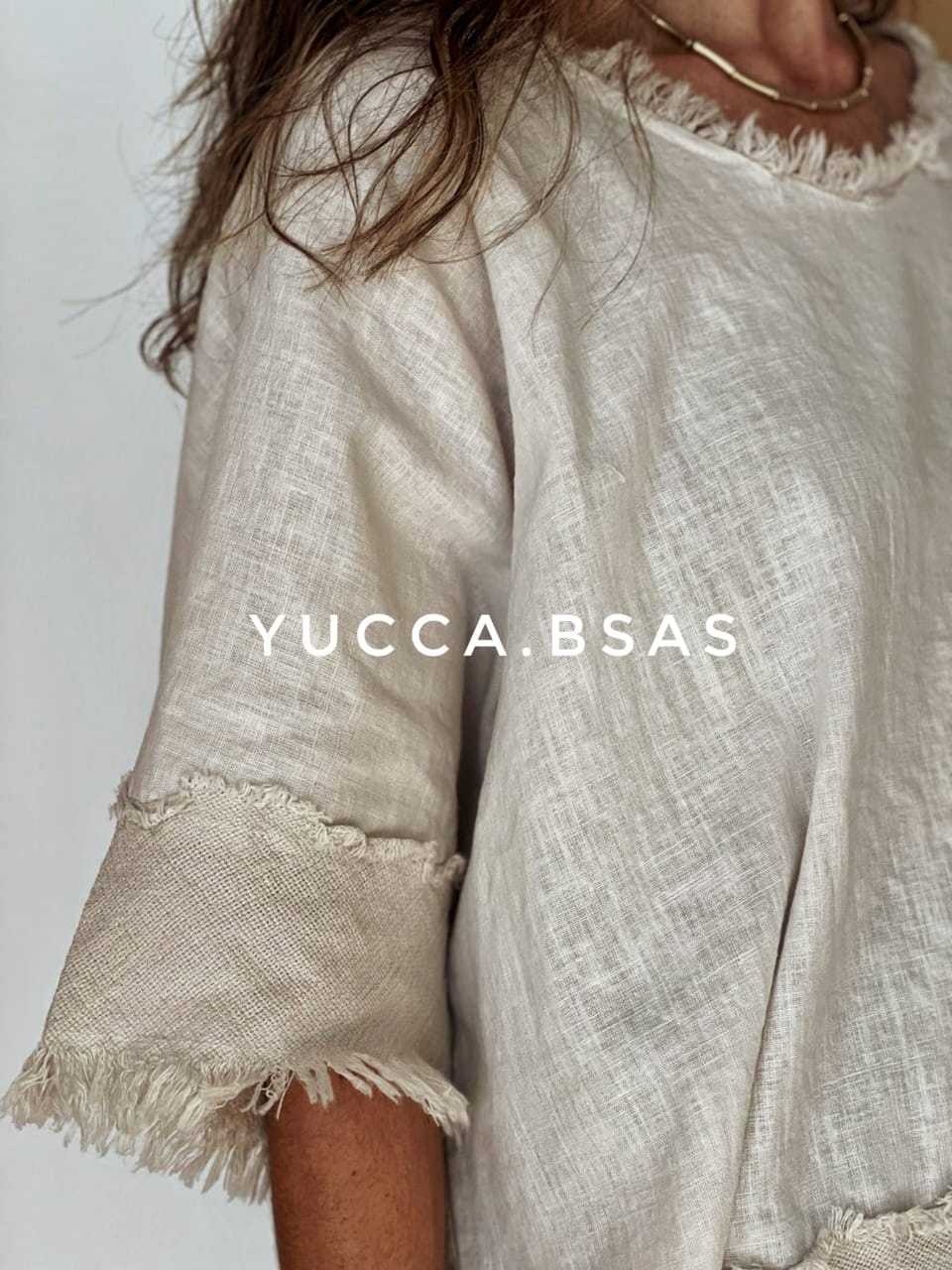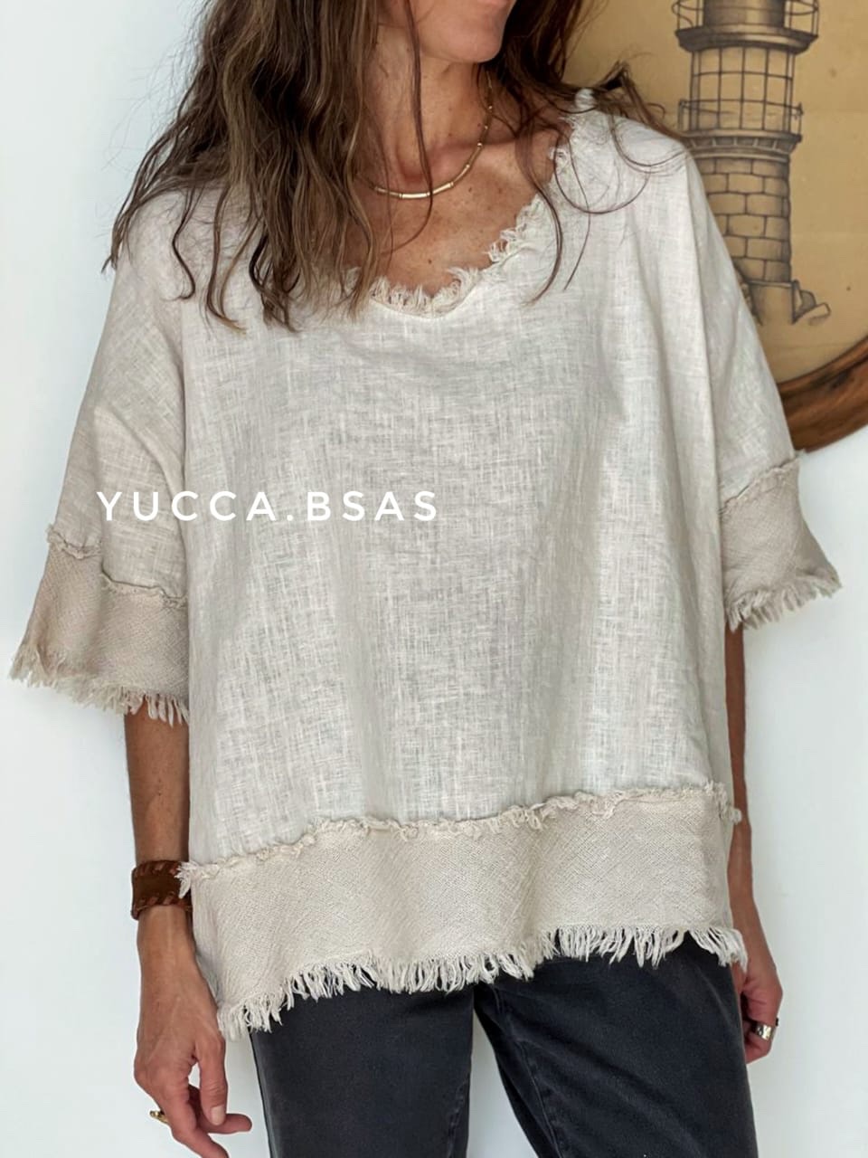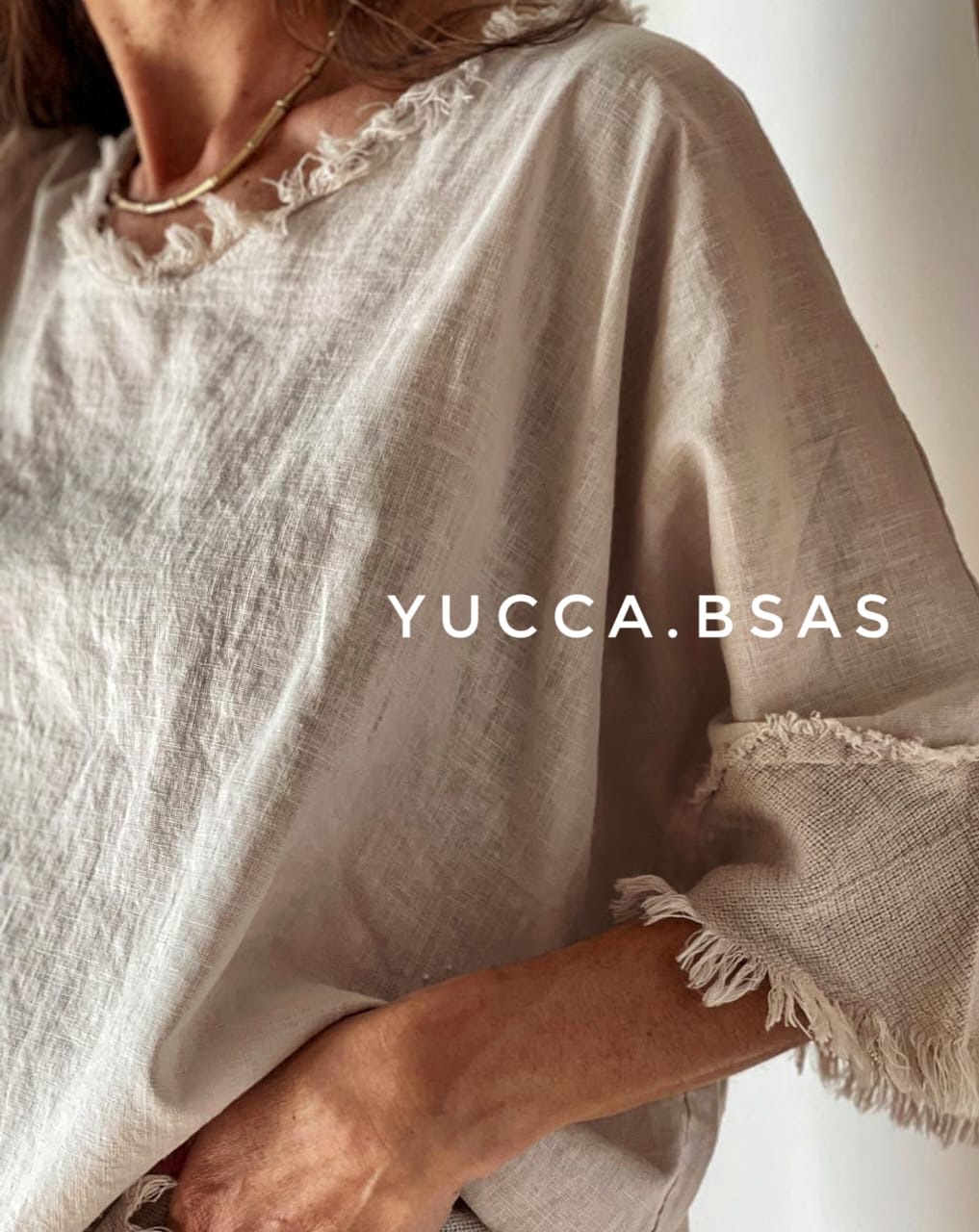 Blusa de lino italiano con detalle de terminaciones en telar de algodón.