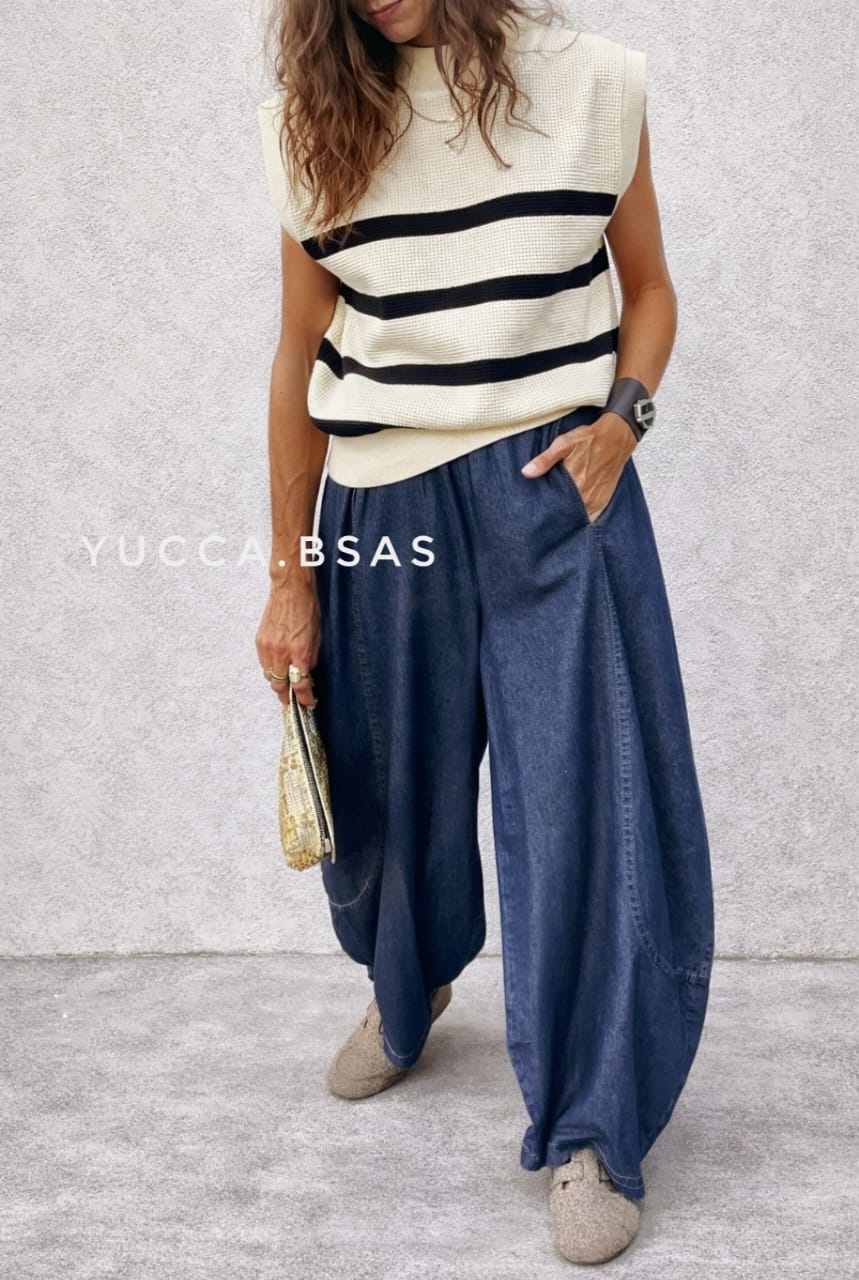 Confeccionado en denim suave y fluido, perfecto para un look canchero y cómodo. Ideal para combinar con prendas al cuerpo o tejidos livianos.