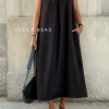 Vestido tipo túnica de lino con algodón escote en V, mangas cortas y bolsillos.
