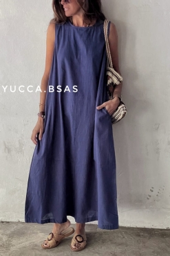 Maxi vestido de viscosa estampada, modelo oversize, sin mangas….cuello escote en V.